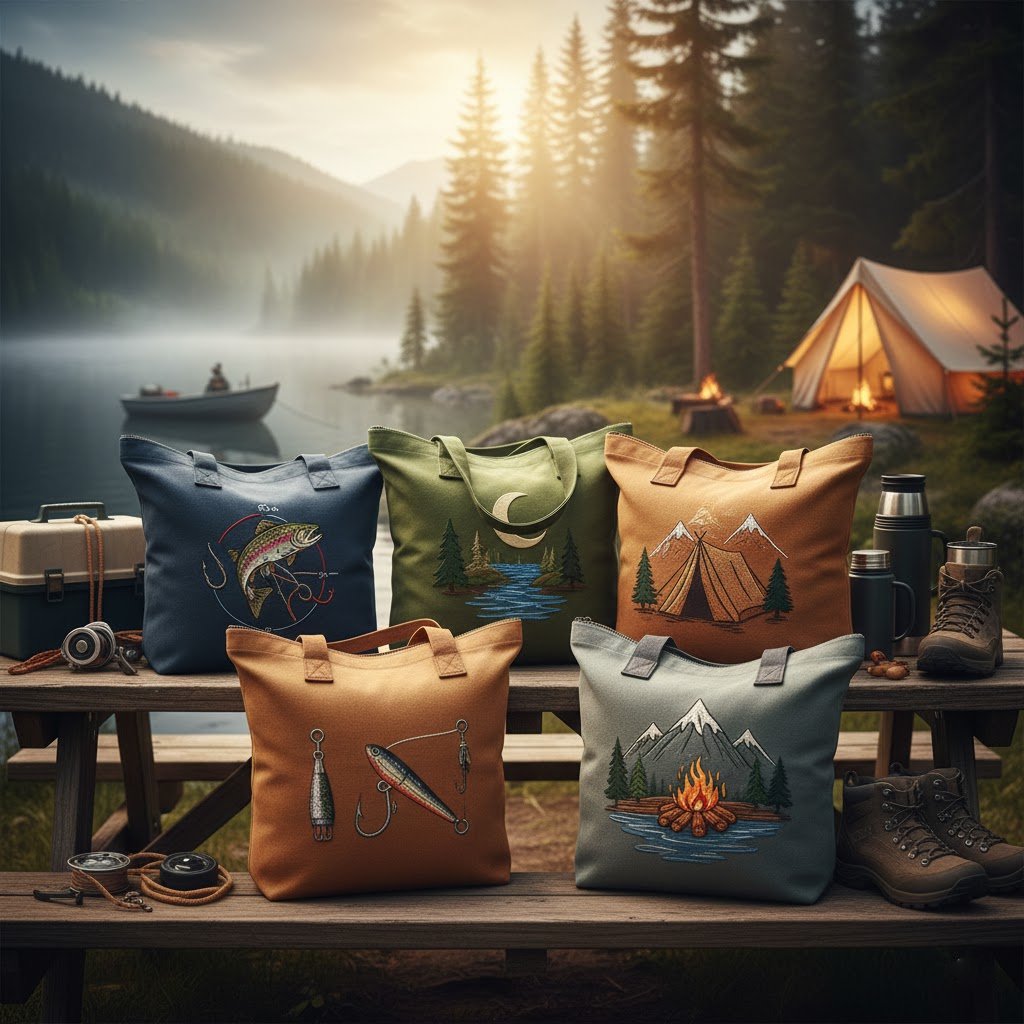"This Caskaystore tote bag with the 'Mountain & Campfire' design is fantastic! The canvas is thick and feels very durable, easily holding all my essentials for a day trip or an overnight camping adventure. The embroidered graphic is beautiful and truly captures the spirit of the outdoors. I use it for everything from carrying my snacks and water bottles to bringing firewood to the pit. It's practical, stylish, and a great way to show off my love for camping."